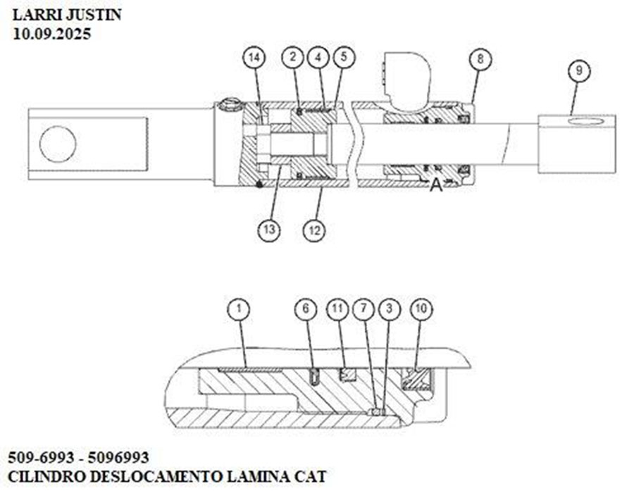 Nome da peça: CILINDRO DESLOCAMENTO LAMINA CAT