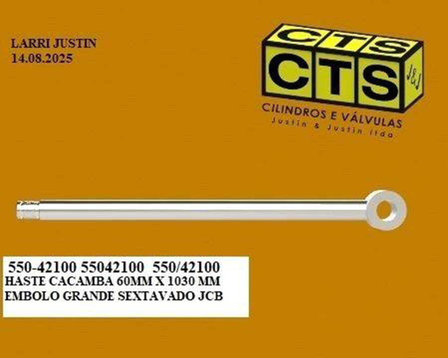Nome da peça: HASTE CACAMBA TRASEIRA 60MM X 1030 MM 4CX EMBOLO GRANDE 3CX 4CX JCB
